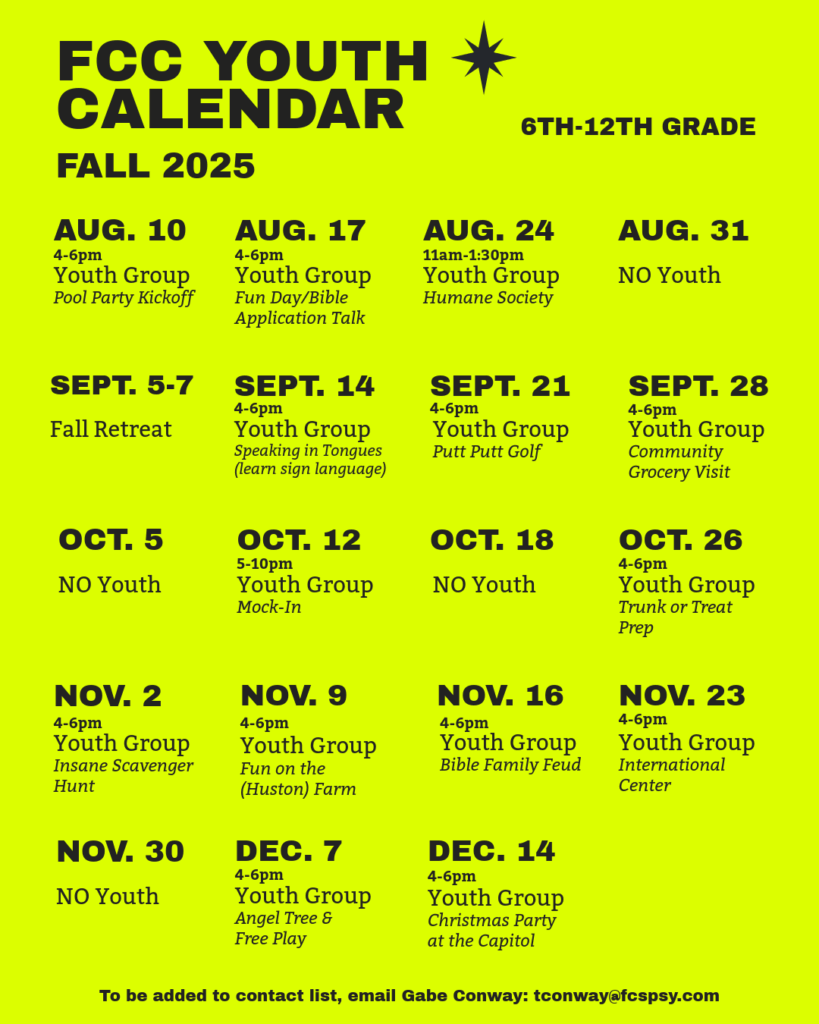 The Youth Ministry of First Christian Church exists to empower youth by strengthening faith, advocacy, self-worth and relationships through interactive education and service.